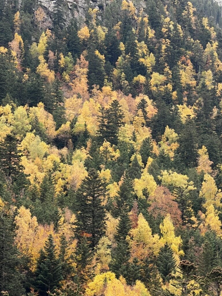 La fauna se deja ver tímidamente: un rebeco que observa desde una roca alta, un ciervo que aparece y desaparece entre los abetos. En este lugar, el ser humano no domina: acompaña. Camina en silencio, respeta, observa.